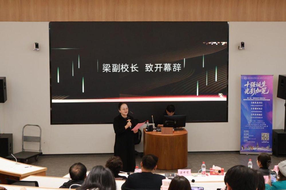 颁奖典礼在梁副校长热情洋溢的开幕致辞中拉开帷幕。梁副校长指出,在全球化与数字化深度融合的今天,语言不仅是沟通的工具,更是文化互鉴的桥梁。她高度肯定了首届大赛所取得的成果,并强调本届大赛在“职普融通、产教融合、科教融汇”育人模式下的深化意义。梁副校长鼓励同学们“以镜头为笔、以世界为卷”,在“探索世界”中拓宽视野,在“传承文化”中坚定自信,在“创新实践”中锻炼自我,用青春的表达方式讲述真实、立体、全面的中国故事,成为兼具家国情怀与国际视野的新时代传承人。