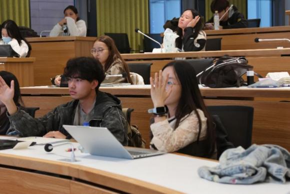 现场互动环节氛围热烈,学生们展现出高度的参与热情与积极的学习态度。针对主讲嘉宾提出的选题方向与技巧要点,同学们主动参与研讨交流,分享见解、碰撞思路,围绕核心话题充分表达观点。在模拟练习与答疑环节中,大家积极响应引导,主动请教专业问题,全程专注投入、互动频繁,现场学习氛围浓厚,彰显了对英语演讲能力提升的迫切需求与进取精神。