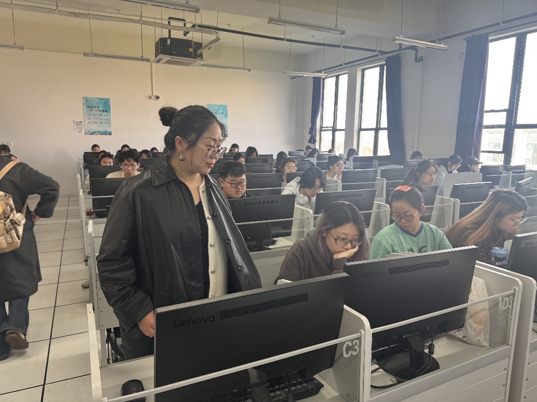 陈昳昕老师巡视考场纪律,监督学生实训活动