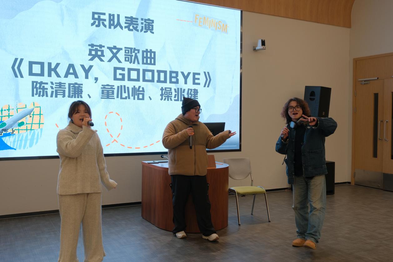 所有奖项发布后,在由陈清廉、童心怡、操兆健三位同学组成的乐队的悠扬歌声中,本次活动进入了尾声。此次成果展示会不仅体现了语言学习中心于本年度内取得的丰硕成果,更向广大师生们展示了我校学子在英语学习各方面的出色能力与青春朝气。