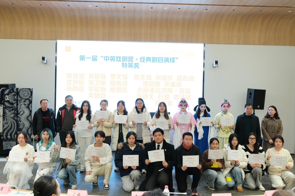 展示结束后,中英戏剧营项目主理人王园老师、语言学习中心吾文泉教授、王光林教授、侯瑞君教授为同学们颁发特等奖奖状。