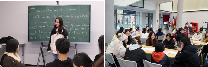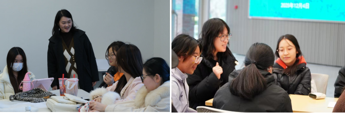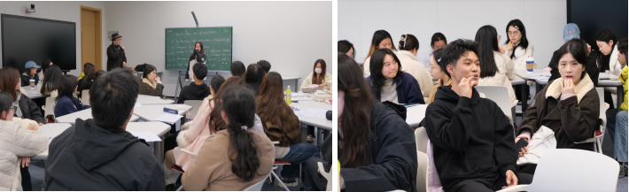 每期活动通过小组研讨中,同学们积极发言、相互补充,不仅深化了对主题的理解,更初步搭建了口语表达的信心。每期参与者随机进入两个不同的小组进行小组互动后,还会进入不同形式的趣味互动环节。从切换至“留学生”身份展开自由对话、介绍自己的梦想,到文化知识抢答赛等有趣的活动,让大家放下拘谨,主动分享观点、倾听回应,在真实模拟的语言场景中锻炼口语应变能力。现场时而响起会心笑声,时而出现热烈辩论,老师们也在周围静静倾听,给予鼓励,同学们在轻松愉悦的氛围中突破语言壁垒,提升了沟通技巧。